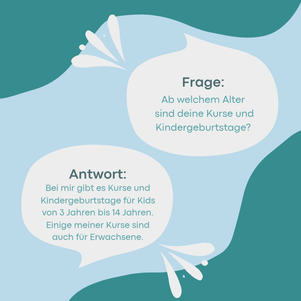 Bei mir könnt ihr Kindergeburtstage und -kurse für Kinder von 3-14 Jahren buchen. Aber auch als Kreativangebot für Feste und Veranstaltungen stehe ich euch zur Verfügung.